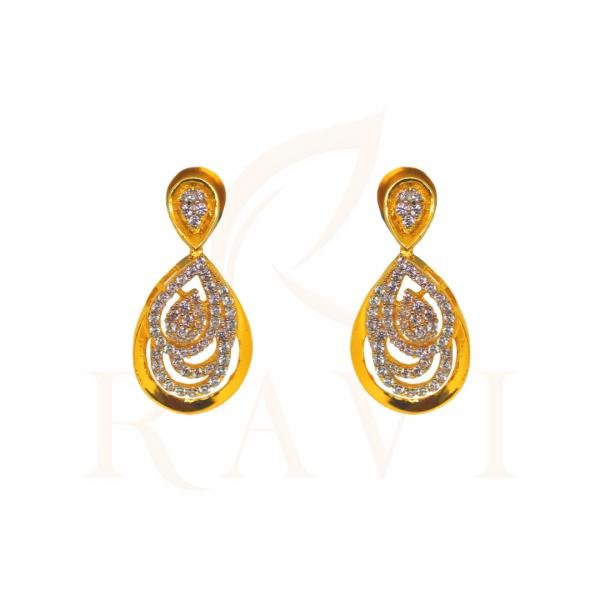These gold danglers are inspired by rain drops. Studded with precious white stones, this beauty is the perfect pick for your date night.